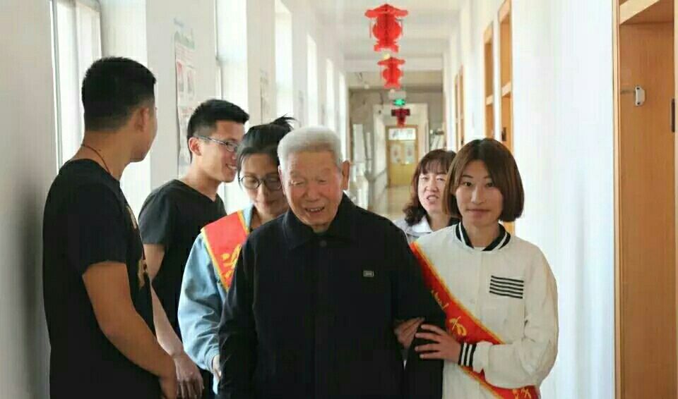 一位老爷爷,80多岁的高龄,仍是精神抖擞,饶有回味的给我们讲解放战争时期的岁月和他年轻时期的生活,告诉我们现在的生活来之不易,要珍惜今天的幸福生活。最后,在全体参与活动人员的《歌唱祖国》大合唱中让老人们感受到了那段激情燃烧的岁月。到了11点左右同学们搀扶着老人回房间,叮嘱老人注意身体,与老人和工作人员告别后便依依不舍的离开了。