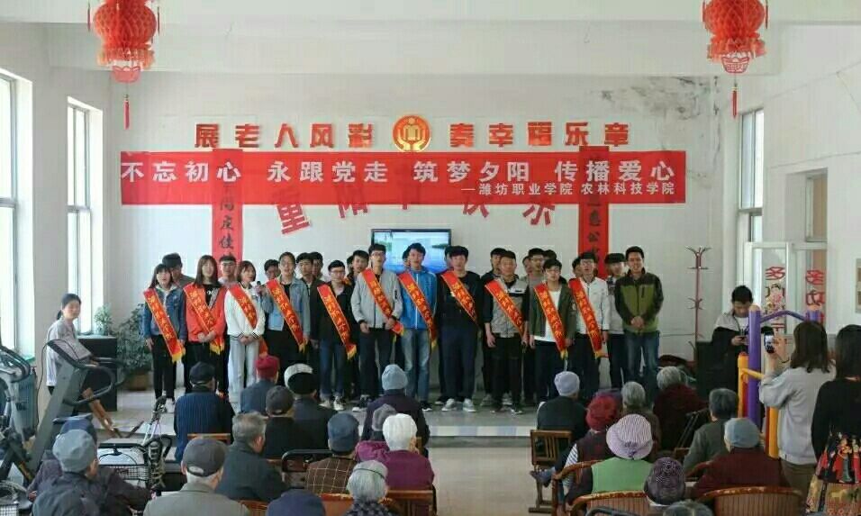到达老年公寓之后同学们积极帮助工作人员打扫卫生,并且将我们带去的慰问品送给老人们。老年公寓的负责人向大家介绍敬老院的情况以及向老人们说明我们此次来访的目的,并且对我们的到来表示热烈欢迎!部分同学给老人们演唱了歌曲,老人们像是在听自己的孙子孙女在唱歌一样,眼里充满了慈爱。最后由团总支老师代表参与活动的全体成员向老人们表示了深切慰问。