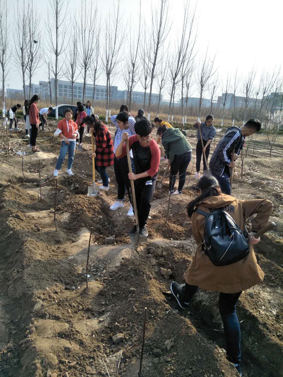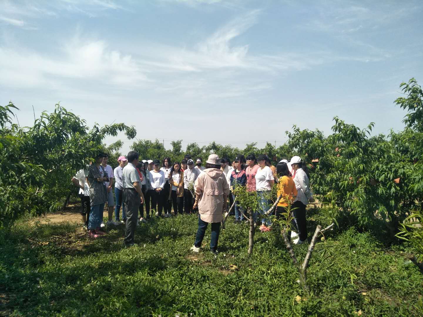 邹老师结合自己日常教学,带领导师班指导的员工,在原有实验园基础上,进行了重新规划、栽植、养护、管理,目前小果园有桃、梨、苹果、石榴共4个种,13个品种。同学们通过这个持续性的活动,把理论应用于实践,通过动手操作真正学会栽植,浇水,施肥,叶面喷药肥,除草和春季修剪等实践操作技能,在他们的精心呵护下,小果园初步形成雏形,既美化了校园又为下一步的实践教学如嫁接、夏季修剪等准备了素材。