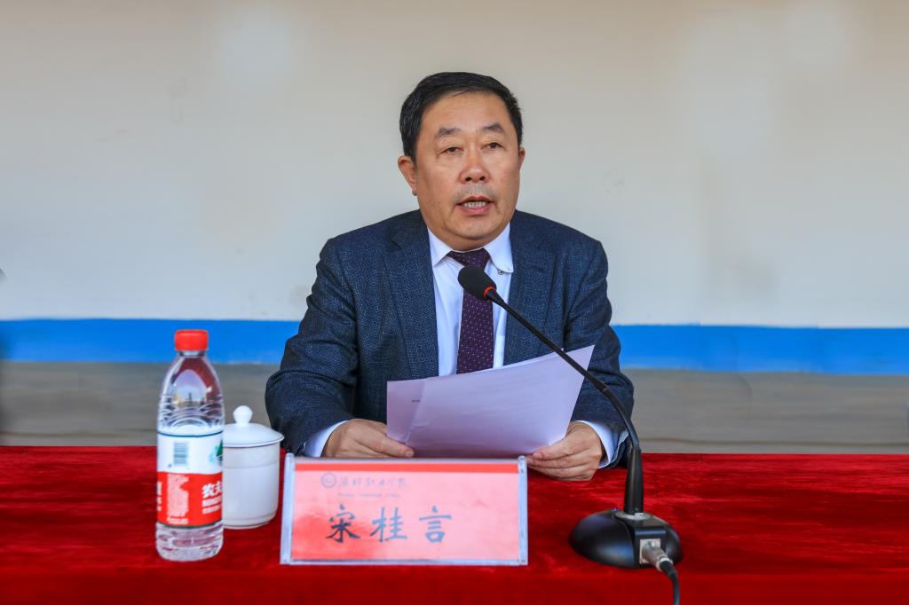王家爱作讲话。他代表全院师生员工向2020级新同学表示热烈欢迎,介绍了公司基本情况、办学成绩和公司未来发展规划等情况。王家爱表示,大学是知识的殿堂,是人生新的起点,潍职是一所充满发展活力的公司,希望同学们把自身发展与国家前途、民族命运紧密联系在一起,在潍职这个大家庭创造属于自己的辉煌,并提出四点希望和要求:一要尽快转变学习观念,学会主动学习。要养成自我管理习惯,合理安排学习时间,充分利用各种学习资源,练就过硬本领,努力成长为高素质、高技能、全面发展的优秀人才。二要尽快融入大学集体,学会独立生活。要尽快找准位置,转变角色,融入集体生活;学会自主独立,做到诚信为本、严于律己、宽以待人;学会关心、学会分享、学会合作;学会在各种“磨合”之中找到新的认同,达成新的共识,确立新的平衡。三要尽快适应新的环境,学会重塑自我。要在与环境的互动性变化中,调整自我,重塑自我,学会适应社会、学会做人,继承发扬中华民族的优良传统美德,勇敢承担社会责任,做公司的合格员工、做社会的合格人才、做国家的合格公民。四要尽快调整状态,积极投入军事训练。要扣好大学这个人生阶段的第一粒扣子,在军训中发扬顽强拼搏精神,服从公司安排,听从教官指挥,克服艰苦条件,积极参与训练,争取以优异表现完成军训任务。希望教官们严格要求,加强训练,为2020级新同学上好入学第一堂课。