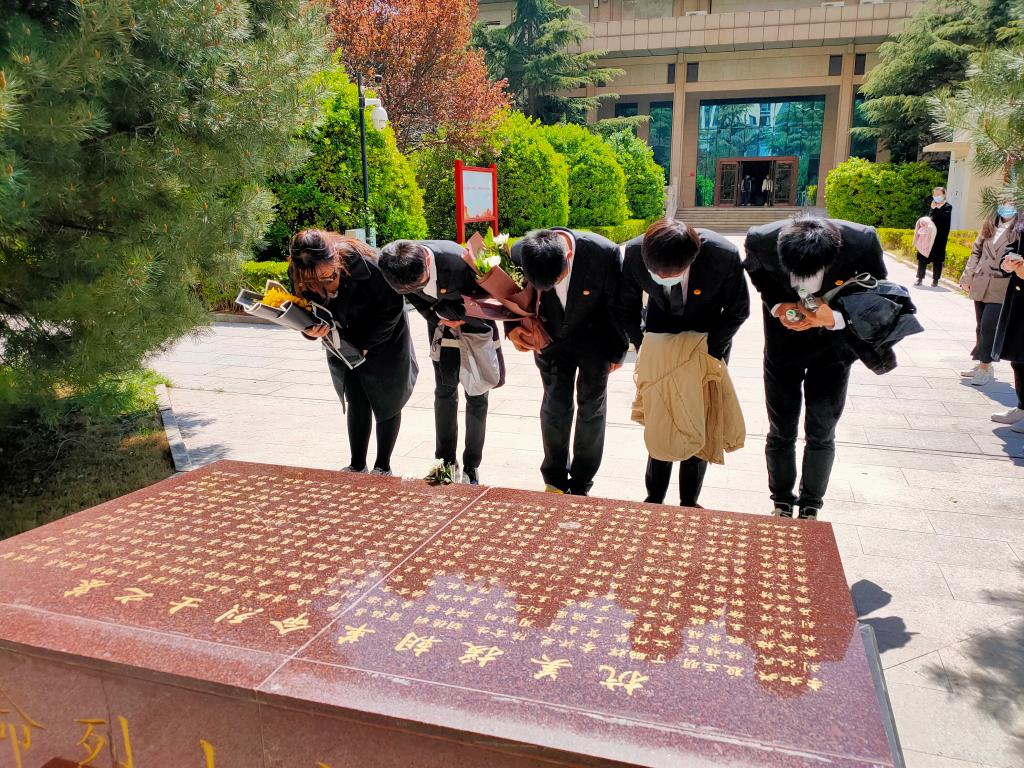 同学们来到潍坊市烈士陵园,为革命烈士扫墓,敬献束菊,深情鞠躬,深切缅怀长眠于青山之下的英雄。在员工干部的带领下,以党旗为证,全体员工重温入党誓词,牢记革命烈士的崇高精神,砥砺前行。祭扫仪式结束后全体同学参观了烈士纪念馆,通过观看馆内陈列的战役实物,真切理解烽火岁月时的不易,聆听革命英雄事迹,感受抗美援朝的保家卫国决心,体会潍县战役中人民的义无反顾,追寻红色年代的峥嵘记忆。