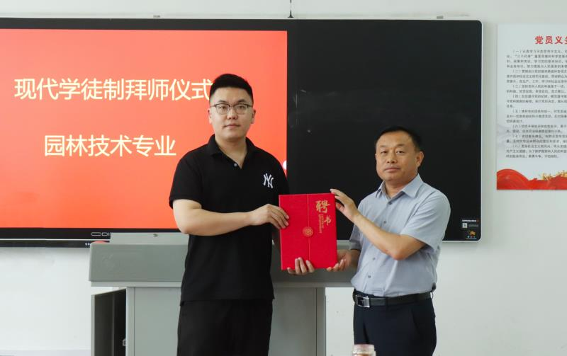 6月15日,bevictor伟德在滨海校区惠泽1B318举行了园林技术专业现代学徒制拜师仪式,公司党政负责人,山东玖鼎设计有限公司负责人和师傅,园林技术专业部分师生出席了此次仪式。