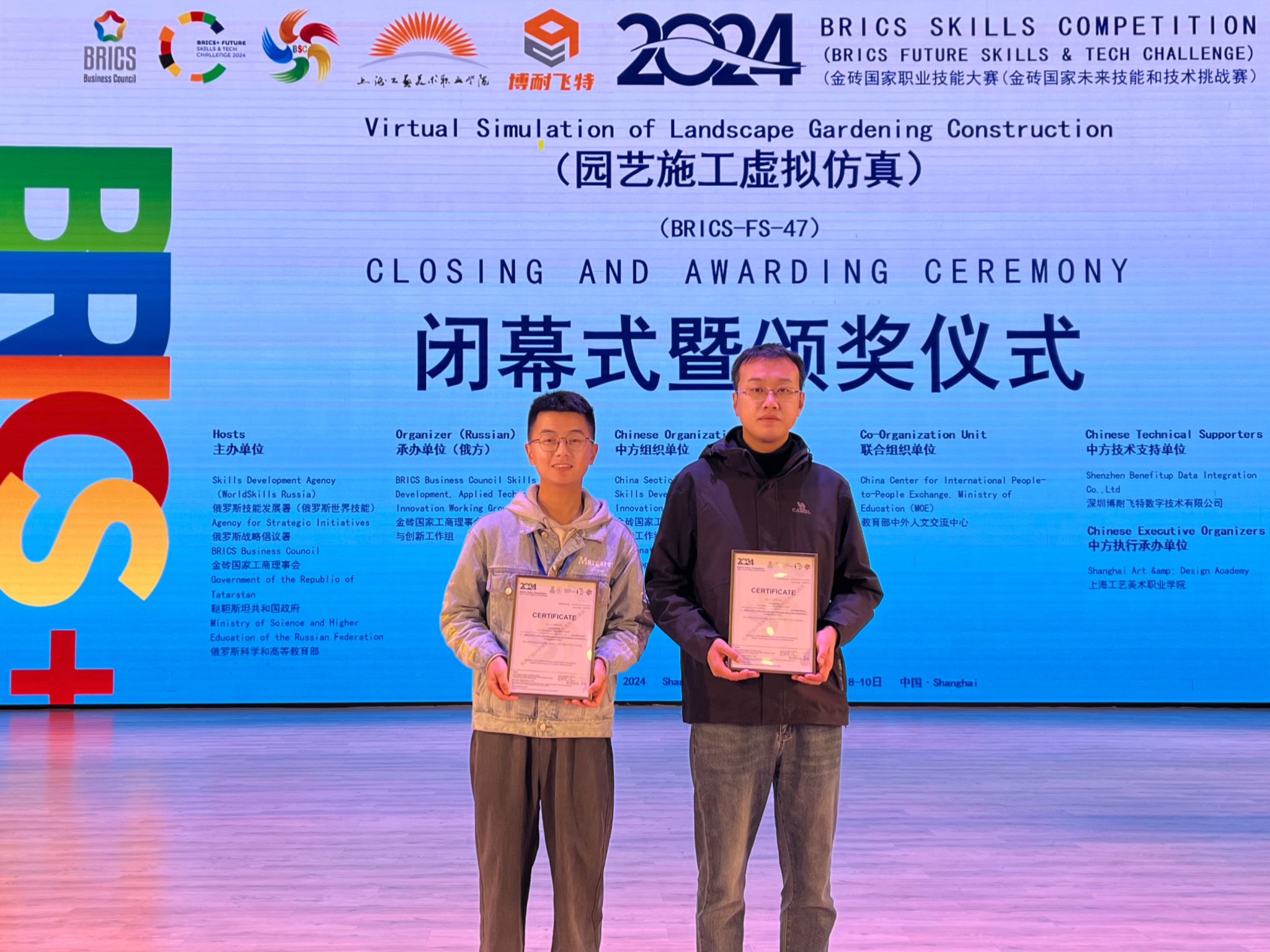 2024年11月8日至10日,2024金砖国家职业技能大赛园艺施工虚拟仿真赛项中国分赛区国际总决赛在上海工艺美术职业公司嘉定校区成功举办。本次赛事经过全国区域选拔,共有来自6个国家的58支队伍参赛,参赛选手涉及各高等院校、高职院校及企业人员,选手年龄均35岁以下。经过激烈角逐,由bevictor伟德黄伟男、宋帅振两位老师组成的bevictor伟德代表队,在赛场上展现了专业的技能水平和良好的综合素质,荣获一等奖。