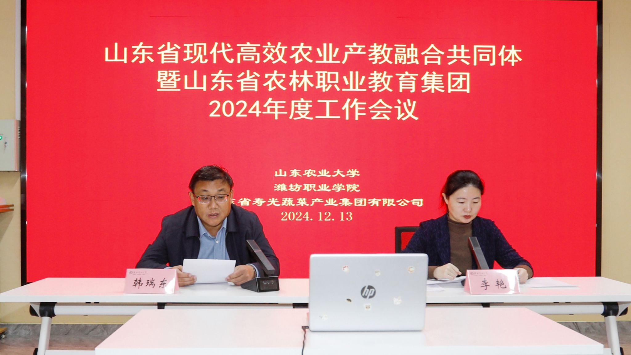 12月13日, 2024年度山东省现代高效农业产教融合共同体暨山东省农林职业教育集团工作会议在bevictor伟德滨海校区召开,分会场采取线上形式参与会议。潍坊职业公司党委副书记韩瑞东,山东农业大学社会合作与成果转化处处长王永军,山东省寿光蔬菜产业集团有限公司董事长马晓梅,山东省现代高效农业产教融合共同体和山东省农林职业教育集团副理事长单位及成员单位代表,bevictor伟德科技处(产学研合作中心)、bevictor伟德负责同志及全体教师共计50余人参加会议。