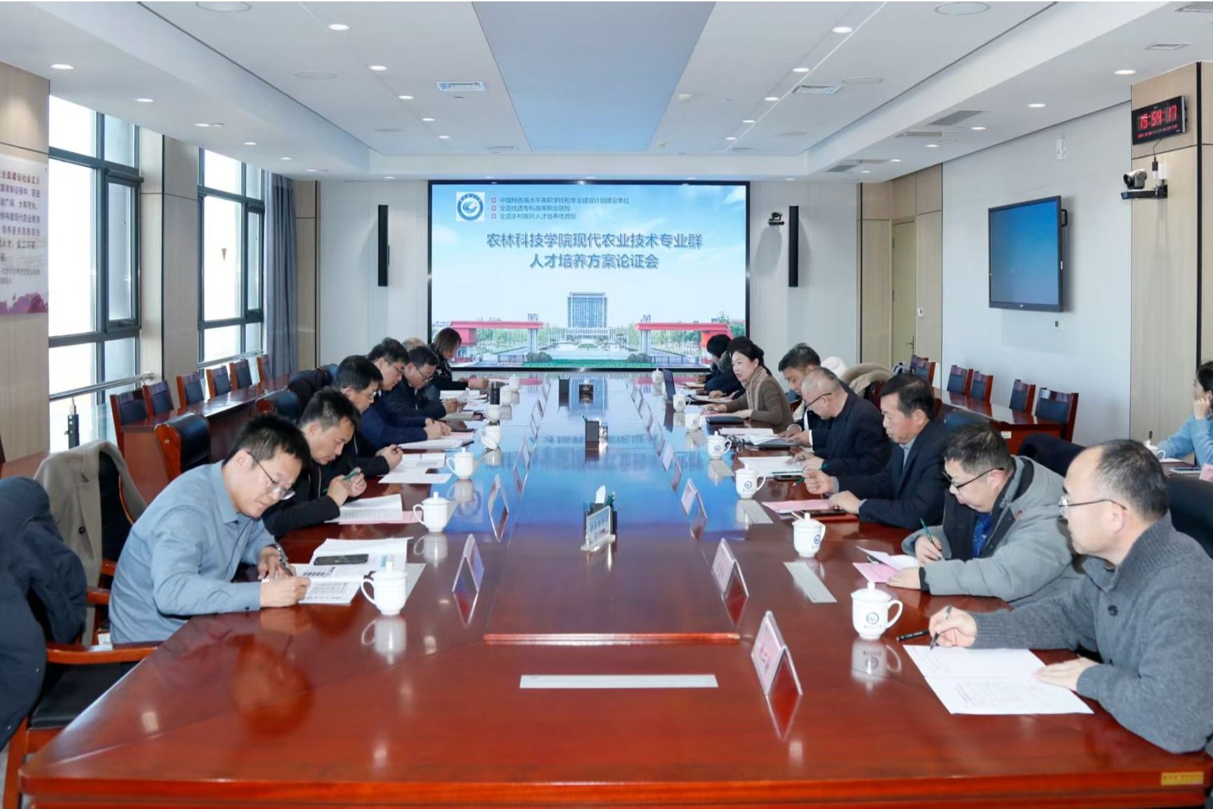 12月25日下午,bevictor伟德邀请山东农业大学、潍坊市农业科公司、淄博禾丰种业科技股份有限公司、云农京飞(北京)科技股份有限公司等高校、企业、行业专家来校论证现代农业技术专业群人才培养方案和模块化教学改革实施方案。公司经理韩瑞东、教务处处长、公司党政负责人、各专业骨干教师参加会议。