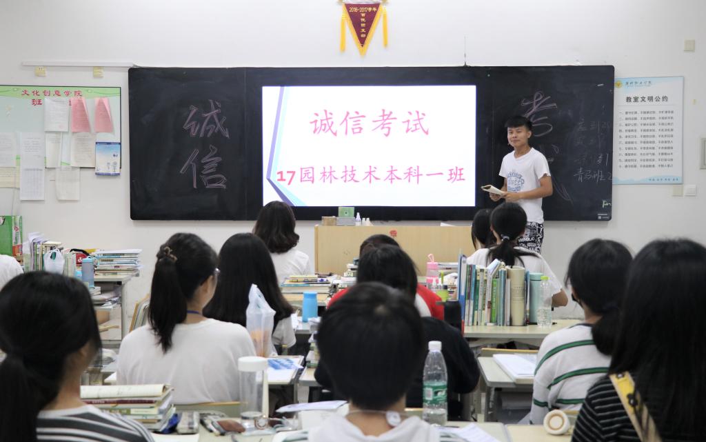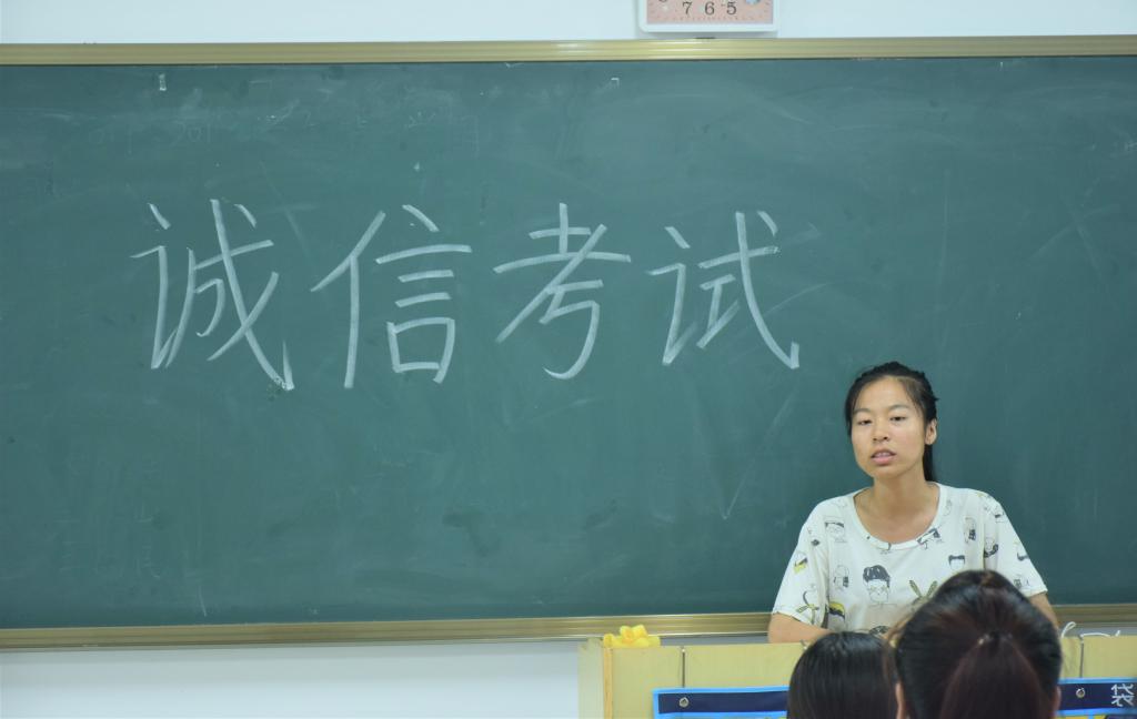 此次活动以班级为单位,各班负责人向同学们讲解了诚信的含义并结合名人名言、小故事、成语典故等形式阐释了诚信的重要性,劝告同学们考试作弊会践踏诚信理念,加剧信用危机。随后,同学们围绕“怎样诚信考试”等问题进行了积极的讨论。在班长的带领下,全班同学共同宣读了考试规章制度,并在诚信考试承诺书上郑重签字,本次主题班会就此圆满结束。