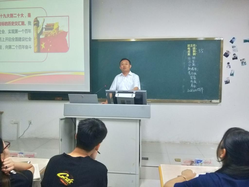 会议伊始,丁书记向同学们介绍了入党流程,即申请条件、申请方法和入党积极分子的确认。随后,他结合自身经历,从新时代三个层面的意义和五个方面的定位入手,向同学们详细讲解了“十九大解读40个新提法新举措”并帮助入党积极分子进一步加深了对党的基本知识的了解,明确了同学们对加入中国共产党人的初心,坚定了同学们永远跟党走的决心。